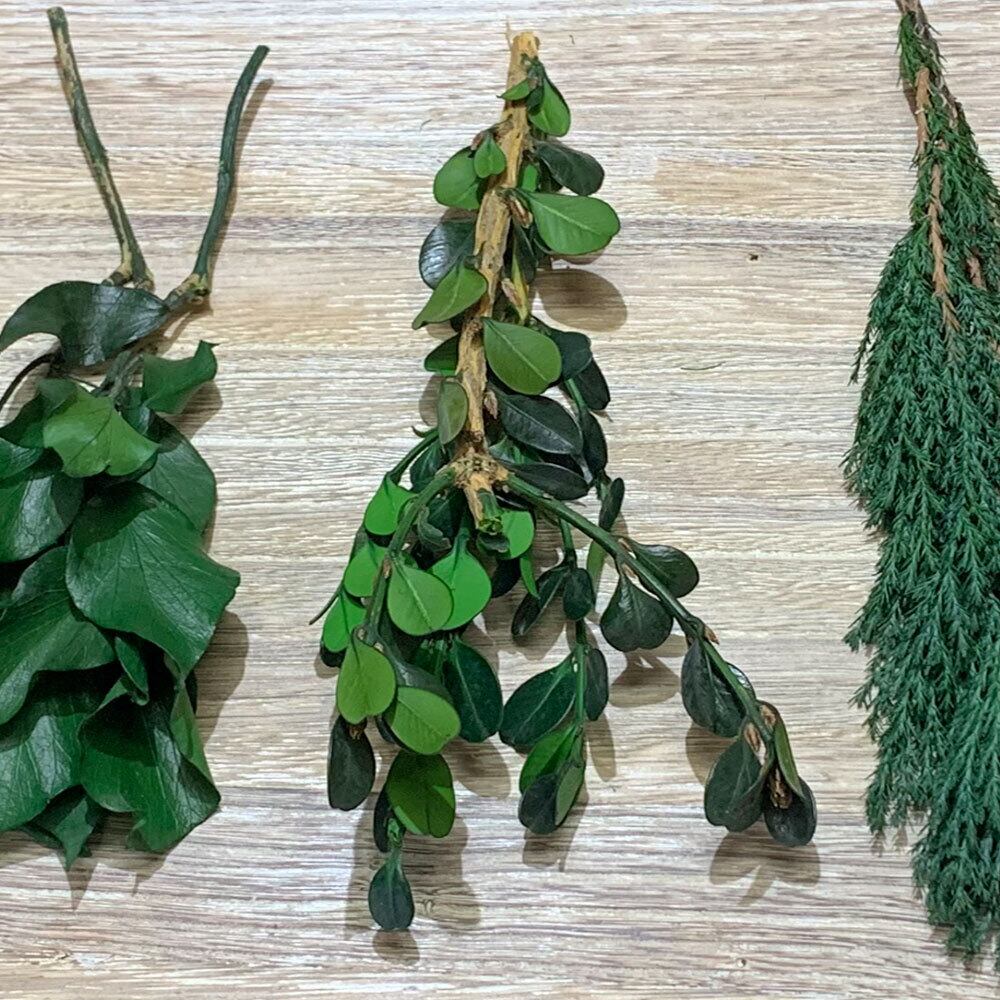 アレンジの空間埋め、リース、スワッグのライン作りに重宝します。