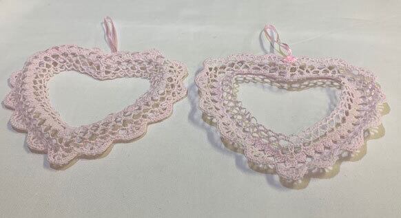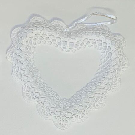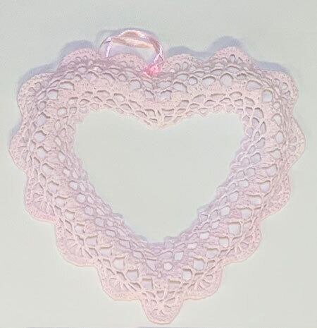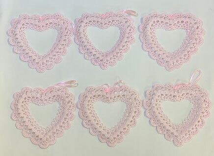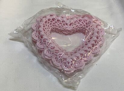 コットンハートリース 15 6枚セット 約15㎝ ホワイト ピンク レース編みしたコットンを樹脂加工してあります。 表中央が膨らんでます。 ※プリザーブドフラワー液等色移りすることがあります。 1枚売りの商品もあります。
