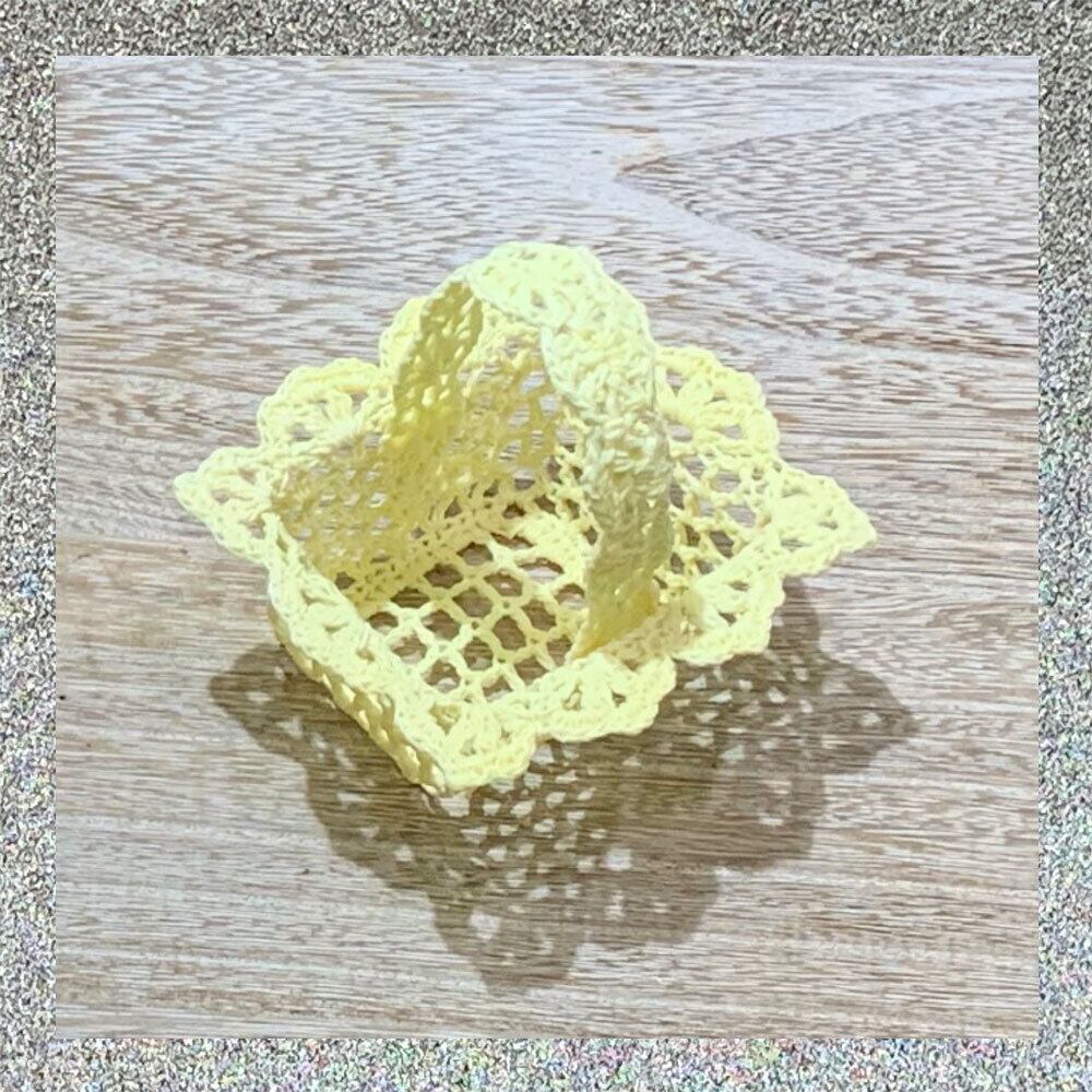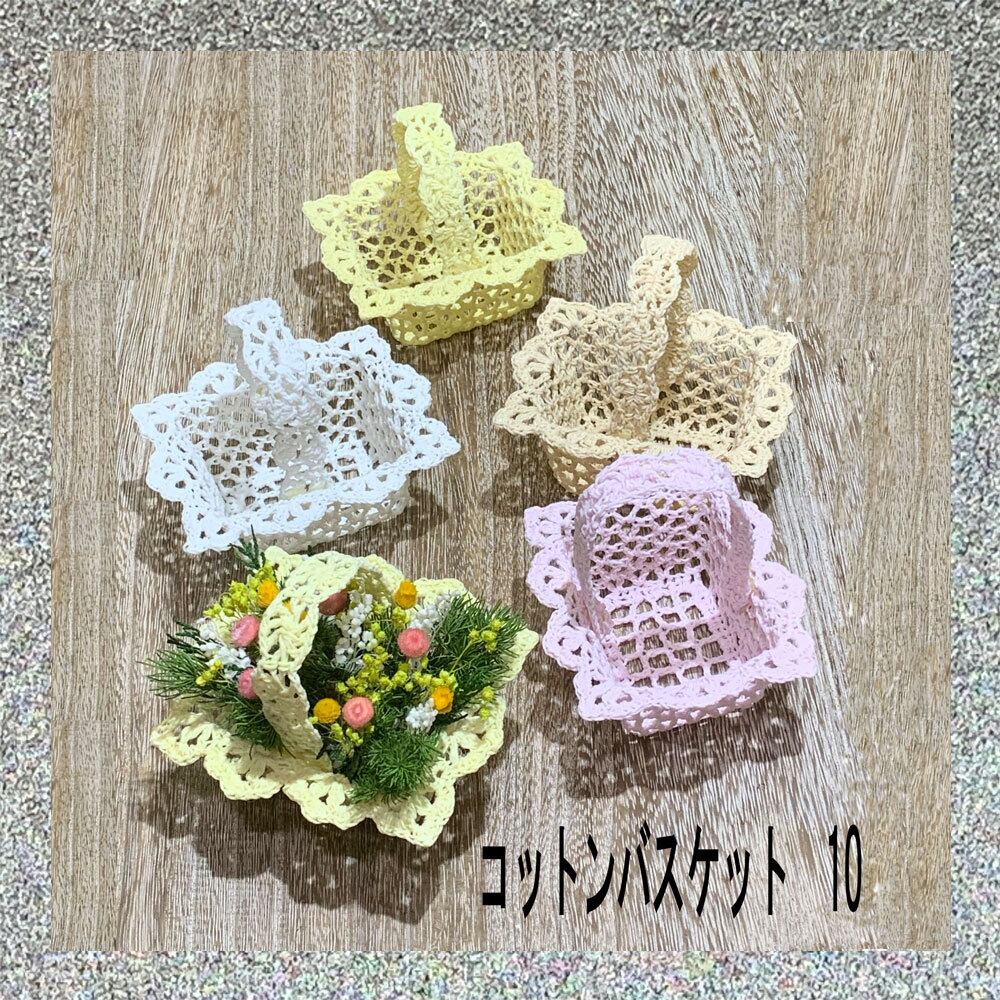 コットンバスケット 10 約10×8×10(h)㎝ ピンク イエロー ベージュ の3色あります。 レース編みしたコットンを樹脂加工してあります。 接着剤が目立つ物もあります。 プリザーブドフラワー、ドライフラワー、造花などのアレンジベース、 そのままインテリアとして飾ったり、用途いろいろです。 染色塗料等で染められますので、好みや季節に合わせてオリジナルな物を作ってみてはいかがでしょうか。 在庫限りです。 ※プリザーブドフラワー液等色移りすることがあります。